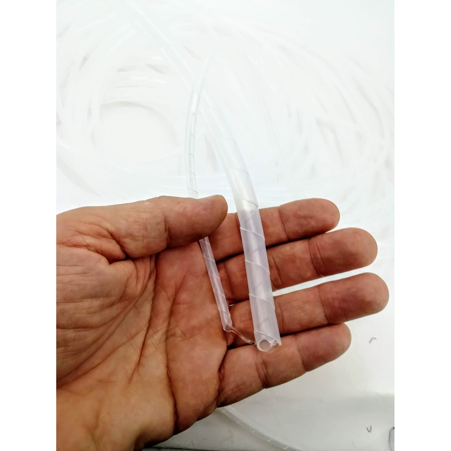 Spirale in polietilene del diametro interno di 5mm, per comporre linee di infusione e sottovuoto, per raccorderia.